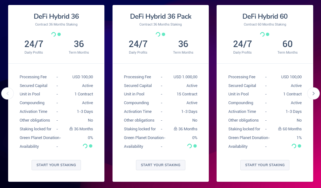 Unser DeFi Hybrid – Vertrag ist vollständig, transparent und nachvollziehbar. Du kannst jederzeit Einblick in den Vertrag und die darin enthaltenen Staking – Optionen erhalten.